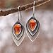 Unique translucent teardrop-shape earrings featuring real dried flowers preserved in resin and surrounded by sterling silver settings