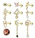 🔴Dangle Cartilage Earrings Set: Total 9 pieces of stainless steel earrings with speical and popular y2k design, including evil eye earrings, butterfly earrings, heart earrings, snake earrings, flat back piercing moon dangle earrings and screw back piercing star dangle earrings. You can wear alone or stackable with other cute flat back set.