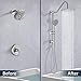 Drill-free Slider Bar - The handheld shower with slider bar can adjust height to accommodate both kids and adults. Low 3-way water diverter & slide bar for easy reach. FITS MOST SHOWERS, MUST HAVE MINIMUM CLEAR 26" VERTICAL WALL SPACE BETWEEN OVERHEAD SHOWER ARM AND MIXER VALVE.