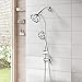 Premium Material -High-quality ABS plastic body brushed nickel dual shower combo, which is not easy to rust and remain clean and tidy surface after years' usage. Design with self-clean anti-clog nozzles to prevent grime from accumulating. The exclusively designed high-pressure system, with a 5ft 304 stainless steel hose offers superior rain spray and a better spa & massage shower experience.