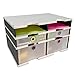 EVERYTHING YOU NEED IN ONE COMPACT, MODULAR SYSTEM - Overall Unit Measures just 19 1/8"w x 11 1/2"h x 13"d. Combines 4 letter tray compartments, 2 Supply & 2 Storage Drawers, and a Riser Storage Base into one compact organizer. Letter Tray Compartments each measure 9 1/16"w x 2 1/4"h x 12 3/4"d and Riser compartments each measure 9 1/16"w x 5"h x 12 3/4"d. The TierDrop Riser Storage Base raises your sorter 5 1/2" off your desk for unobstructed access to the lower compartments.