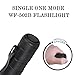 WF-501B use extremely durable aluminum alloy body,slip-resistant handle,comes with convenient hand strap,pocket size suitable for everyday carry.High-efficiency and great output V6 LED bulb,800 lumen max,180 meters of lighting distance.