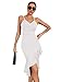 V neck, spaghetti strap, sleeveless, asymmetric wrap ruffle hem design adds a sense of chicness, spaghetti strap bodycon party midi dress suitable for every pretty lady.
