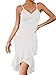 Asymmetrical hem, ruched high waist, double layer at the bust area, sexy beach dress for women.