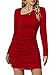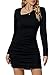 Features: puff long sleeve, low square neck, above the knee, gathered piched sides, short dress with high waist, ruched front bodycon club mini t-shirt dress