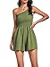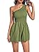 Sexy one shoulder sleeveless romper with trim designed at neckline, cute summer sleeveless short rompers for girls and women