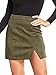 Feature: high waist, side split hem, zipper closure, a-line, bodycon faux suede mini pencil skirt with slit.