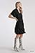 Collar : V-neckline : 3/4 sleeves : short folded sleeves : ruffled tiered body : frayed hem : a-line mini silhouette