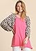 Umgee Women's Color Block Cotton Gauze Leopard Trim Tunic Top