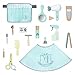 18 PIECE Realistic Barber Kit : Wooden Barber playset accessories include a Hair dryer, hairdressing watering can, hair clipper, perm stick, beard foam, hair scissors, razor, mirror, comb, sponge brush, hair brush, hair dye brush, hairdressing knife, bib, belt bag