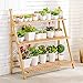 TIERED PLANT STAND: Bamboo rack stand is wide in plate, perfect for displaying a variety of thriving house plants or fresh floral flowers, succulents, potted donkey tails, collectibles, even heavy pots bonsai addition to be a flower stand, it also can be a fancy shelf for storage and decoration