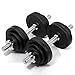 ADJUSTABLE SET OF 2 DUMBBELLS - 5 lbs to 32.5 lbs in 2.5-lbs increments. Includes TWO 15.75”x1.15” handles, EIGHT 5-lb plates, FOUR 2.5-lb plates, FOUR 1.25-lbs Plates, FOUR Collars