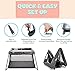 PORTABLE — The pop-up playpen is compact, lightweight, portable, and convenient. Ready within seconds with easy to assemble poles. The included carry bag makes it easy to use indoor and outdoor. The padded floor, covered bars allows your baby to play friendly and sleep happily