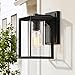 Ideal Size--Measuring this farmhouse outdoor light at 5" L x 6.5" W x 9" H. The rectangle backplate size of 4.5" W x 6.5" L, and the glass shade size is 3" D x 7" H, makes it a versatile choice for various outdoor locations such as your garden, front door, open patios, garage, hallway, lanais, pergolas, and more. Trust in its ideal size and design to enhance the ambiance of your outdoor space.