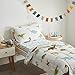What You Get: 4-Piece Toddler Bedding Set includes: 1 reversible comforter (42x57inch), 1 reversible pillowcase (20" x 30"), 1 flat top sheet (45" x 60") and 1 fitted bottom sheet (28" x 52" x 8"). All pieces are measured to fit a standard size toddler bed