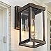 OUTDOOR WEATHER RESISTANT: The outdoor wall sconce is made of durable materials and treated as anti-rusted, making it suitable for use in all weather conditions. Our porch lights boast a unique oil-rubbed finish which make them both with waterproof and beautiful appearance. With its rust and water resistance, it is reliable and long-lasting choice of your outdoor lights for house.