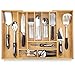 【NATURAL BAMBOO MATERIAL】We constructed our kitchen bamboo silverware drawer organizer with 100% moso bamboo which is earth friendly, elegant, and durable to last for years. Finely polished on all surfaces and gentle for cutlery and utensils