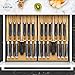 ✨ CLUTTER FREE STORAGE: Our cutlery organizer is great not only for storing flatware, but also as a kitchen drawer organizer for large utensils such as spatulas, tongs, ladles, and more. Find all your kitchen gadgets in one spot and hassle free thanks to our organizers' tall compartment walls. Take advantage of our beautiful bamboo organizers expandability and 9 main compartments.