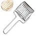 Cheese grater the hand held cheese grater have 4 different grate holes sizes(you can choose your need size), which conveniently peel and shave other citrus fruits such as chocolate, cheese, carrots, beets, zucchini, potatoes, cucumbers, ginger shreds, garlic shreds, or lemons, or used in a grinder for chocolate cake decoration. even shaving holes and peeling serrations can ensure even peeling and shaving.