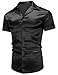 WRINKLE-FREE SATIN DRESS SHIRT - This satin short sleeve button up shirts for men features a smooth silk texture, slim fit cut, short sleeve, solid color, button closure and cuban collar design for a classic and stylish style. This mens silk-like satin shirt is smooth and soft and won't wrinkle easily, it looks very stylish and luxury.