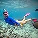 DUAL FINS: The large dual composite fins with vented blades provide excellent power and energy-saving efficiency with soft closed-heel foot pocket will snug and fit comfortably on your barefoot for sizes 9.5 - 11.5 shoe size enhance your snorkeling adventures when exploring and uncovering new depths