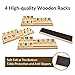 4 Wooden Trays: The double 12 dominos set is equipped with 4 solid wooden holders. Each wood dominoes tray has 3 slightly slanted slots and keeps the dominoes standing upright or sideways in the racks.