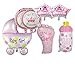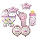 Package: 1Pcs Baby Bottle Balloons, 1 Pcs Feet Balloon, 2 Pcs Crown Balloon, 2Pcs Round Crown Balloon, 1 Pcs Baby Stroller Balloon.