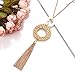 LONG NECKLACE-Simple yet sexy ,the long tassel necklace features hollow disc and handmade straw wicker braid geometric round pendant accented with fluttering chain tassel .Wear these handmade necklace to make you have a fresh touch of the beach.When you wear long skirt, T-shirt, or bikini ,they will make you more playful and sexy ,bring you unique beauty from the ocean.