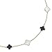 The Clover motifs are 10 mm in size. Necklace weighs 3.0 grams in total. Looks great by itself or layered with other necklaces. The black and white color compliment each other beautifully.