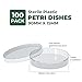 Package: Sterile Plastic Petri Dishes: 100 Pack of 90mm diameter x 15mm deep Sterile Petri Dishes with Lids.【This is a plastic petri dish, please do not heat more than 50 degrees or it will melt】