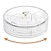 IDEAL SIZE: The rotating organizer come with 4 dividers and lid to better place the items inside. The design with lid can block dust to keep items clean. Its diameter is 9.8'' and its height is 2.3''
