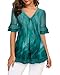 LOOSE DESIGN - The Pleated front can slightly hidden your belley and waist that shape better. And the length of shirt down to cover the buns. Collar v neck and 3/4 Sleeve will be flattering in different situations.