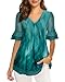 EASY PAIRS - The flouncing blouse suitable in moderate to high temps and good looking with leggings, jeans and capris. The chic v neck design also perfectly for bolder women with a necklace.