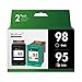 Contents: 2 Pack of Remanufactured Ink cartridges Replacement for HP 98 & 95 (1 Black, 1 Tri-Color)