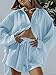 Two piece outfits for women: collared neckline button down blouse top and high waist drawstring short pants