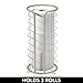 RAISED BASE: Raised feet ensure that toilet paper stays off bathroom floors so rolls are always clean and dry; This space-saving storage solution dispenses one roll and stores three more; The sleek modern yet decorative design coordinates with and complements most home decor; Great for small spaces, use in homes, apartments, condos, dorms, RVs and campers