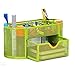 Features 4 pen / pencil holder compartments, 4 supply holders for storage small accessories, and sliding drawer for 3 x 3 inch sticky note pad. Desktop Office Supply Holder also features non-skid rubber pads at the bottom to prevent sliding.