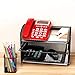 Set of 2 office supply caddy help to keep your desktop organized and clutter-free with angled telephone platform, pullout drawer and pen holder.
