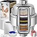 ★ HEALTH CARE SHOWER SYSTEM: Our top-rated showerhead is composed of premium METAL, and internal filter cartridge with Vitamin C + E + A . With 20-stages shower filter, this rain shower head set will amaze you by the latest design and shower water filtration technology