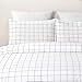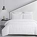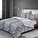 Duvet cover and matching pillow shams feature a grey and white reversible color pattern, easy to change the look of your bed and room