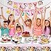 PACK CONTENT - The party decorations set includes 145 party accessories including birthday banner, hanging swirls, cupcake toppers, table covers, cups, ribbons, napkins, 9" plates, 7" plates. Enough for serving up to 16 guests.