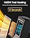 🔥【DURABLE MATERIAL】The indoor space heater uses Class V0 fire-resistant materials, PTC ceramic heating element that heats up in seconds, more powerful, and quiet work with noise<35dB.