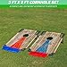 FULL CORNHOLE SET: TWO 3' x 2' cornhole boards, 8 bean bags(4 red and 4 blue), 8 fixed nails, and a carrying case. All Cornhole game pieces included