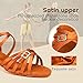 ⭐Beautiful upper ▶ smooth satin,good luster,delicate hand feeling and high color saturation.The crisscross ankle strap design of this round toe dance shoes ensure the shoes stay securely on your feet, enable you to dance as wildly as you want. They are the perfect choice for any party looks.