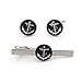 GIFT SET: 4 Piece Set of Personalized Modern Style Men's Jewelry. Each Set Includes Pair of Cuff Links, Matching Tie Bar and Money Clip with Engraved Letters. Great Idea for Wedding - Groomsmen with Matching Jewelry Details.
