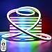 【Dimmable Premium LEDs High Brighteness】Built-in SMD 5050 80LEDs/M high-quality LED chips, RGB led neon creates vivid color rating of CRI 80+ for ambiance lighting decoration,comes with 24 keyboard remote offers 9 colors and 3 modes for choice. Select different colors or modes, dim or brighten the neon lights to match the corresponding atmosphere and festival.