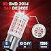 With 33 SMD-2835 chips and a T25 wedge base, the 3157 LED bulb is powered by 2.5-Watt and is capable of producing super bright 640 lumens light output of 3000K amber yellow. Thanks to 360 degree design that allows light to be illuminated without any dark spots.