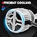 Heat transmission is quicker with the original nickel-plated double thermal conductivity copper tube and pure copper substrate. Meanwhile, thanks to the aviation aluminum shell and high-speed turbocharged fan, the heat can efficiently be dissipated and the life span of bulb is more guaranteed to be over 30,000 hours.