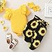 Baby Girl Summer Outfits Set: Crew neck, Letter Print, Flare ruffle sleeve, Loose shorts with stylish elements, sunflower, leaf, stripes, Elastic waist for a better fit, decorated with lovely bowknot. Perfect for summer outfits.