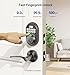Fingerprint Unlock: Identifies your fingerprint in 1 second and unlocks your door in 0.3 seconds. The biometric fingerprint recognition rate is 99.99%.